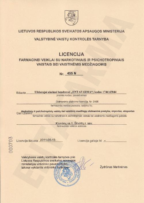 ENTAFARMA 1993 m. pradėjusi savo veiklą nuo didmeninės vaistų prekybos, sėkmingai ją vysto iki šiol. Mes tiekiame vaistus bei kitas prekes daugiau kaip 1200 vaistinių ir 350 asmens sveikatos priežiūros įstaigų visoje Lietuvoje bei daugiau kaip 100 didmeninio vaistų platinimo įmonių Pabaltyje ir kitose šalyse.